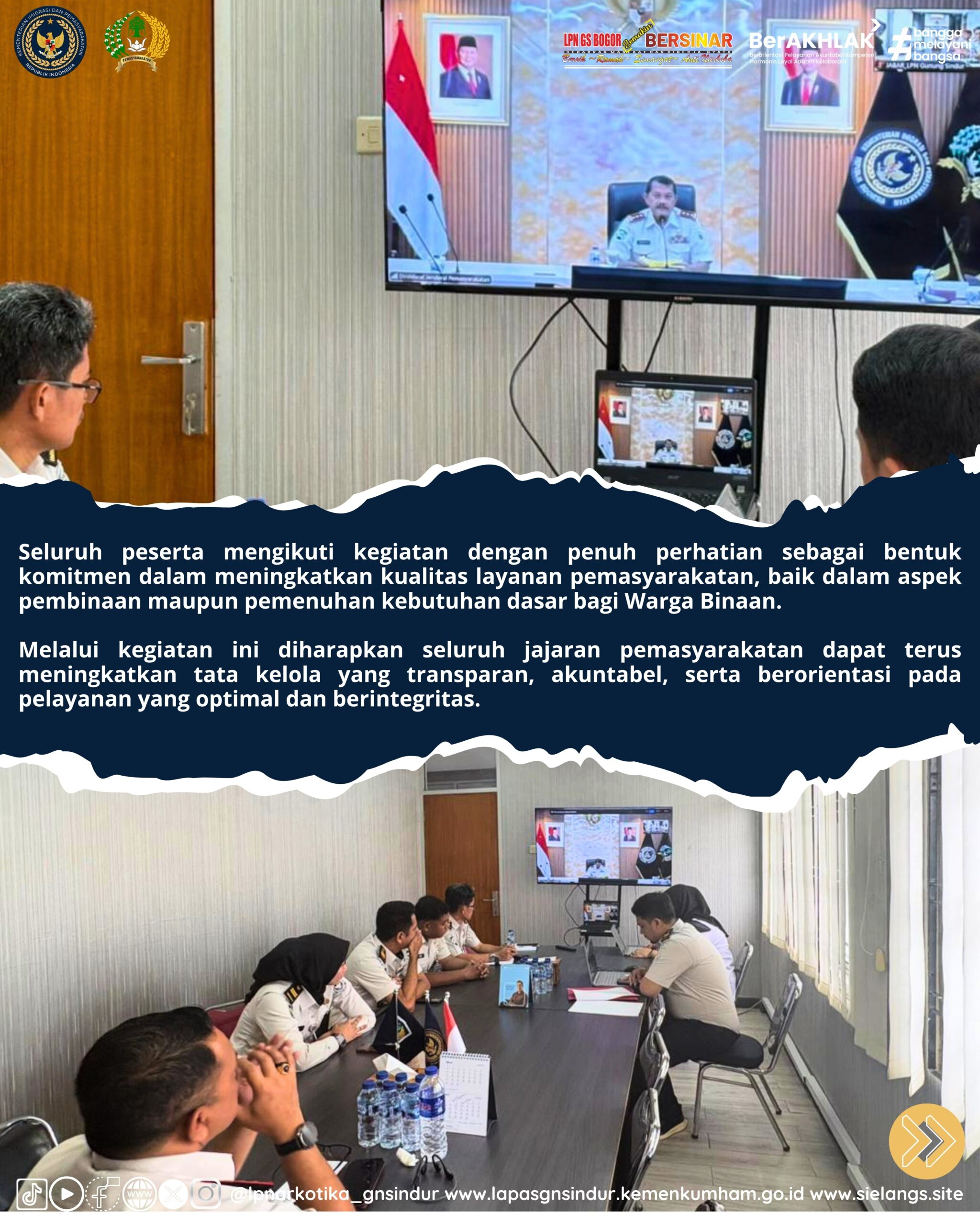 Melalui kegiatan ini diharapkan seluruh jajaran pemasyarakatan dapat terus meningkatkan tata kelola yang transparan, akuntabel, serta berorientasi pada pelayanan yang optimal dan berintegritas.
