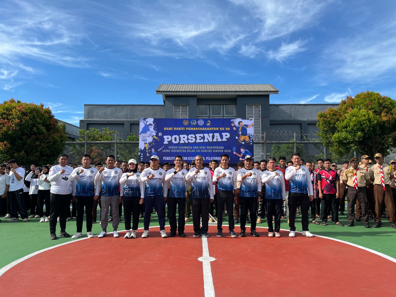 Gunung Sindur, 10 April 2026 — Lapas Narkotika Gunung Sindur menggelar upacara pembukaan Pekan Olahraga dan Seni Narapidana (PORSENAP) dalam rangka memperingati Hari Bakti Pemasyarakatan ke-62. Kegiatan berlangsung dengan khidmat dan penuh semangat, diikuti oleh pejabat struktural, pegawai, serta warga binaan.
